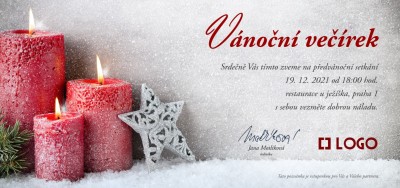 Chystáte ve firmě vánoční večírek nebo jinou akci? Pozvěte hosty stylově pozvánkou, kterou můžete mít jak v tištěné, tak elektronické podobě pro zaslání e-mailem. Pozvánku upravíme dle vašich požadavků, doplníme vaše logo, název, texty, datum akce, datum a následně vytiskneme nebo dodáme v elektronické podobě pro rozesílání mailem.