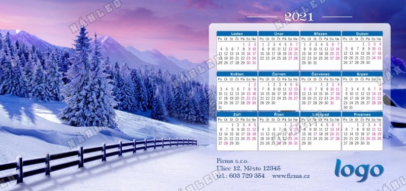 Novoročenka s kalendářem v zasněžených horách s červánky