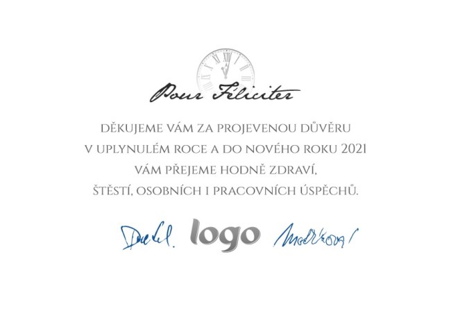 Toto vánoční přání je otevírací ve formě knížky (s textem přání a logem uvnitř). Přání je do obálky C6. Námi vyráběné novoročenky a vánoční přání jsou tištěny na kvalitním 300g křídovém papíře.