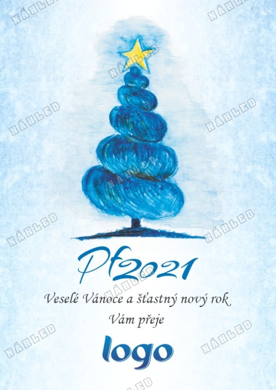 Novoročenka s modrým vánočním stromem a zlatou hvězdou