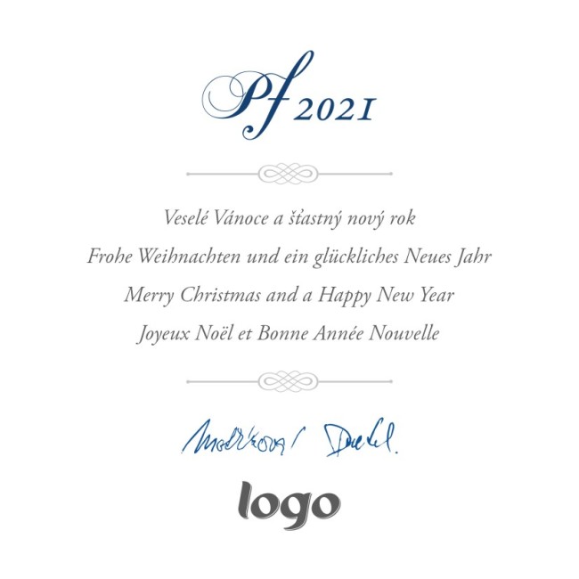 Toto vánoční přání je otevírací ve formě knížky (s textem přání a logo je uvnitř). Přání je do čtvercové obálky. Námi dodávané novoročenky a vánoční přání jsou tištěny na kvalitním 300g křídovém papíře.