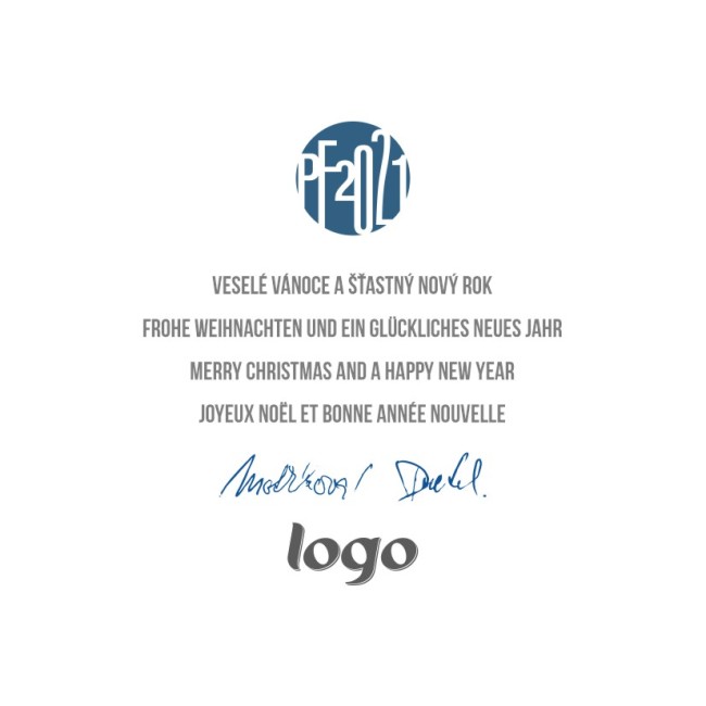 Toto vánoční přání je otevírací ve formě knížky (s textem přání a logo je uvnitř). Přání je do čtvercové obálky. Námi dodávané novoročenky a vánoční přání jsou tištěny na kvalitním 300g křídovém papíře.