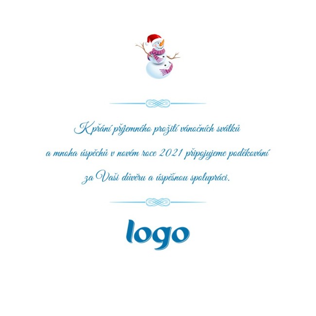 Toto vánoční přání je otevírací ve formě knížky (s textem přání a logo je uvnitř). Přání je do čtvercové obálky. Námi dodávané novoročenky a vánoční přání jsou tištěny na kvalitním 300g křídovém papíře.