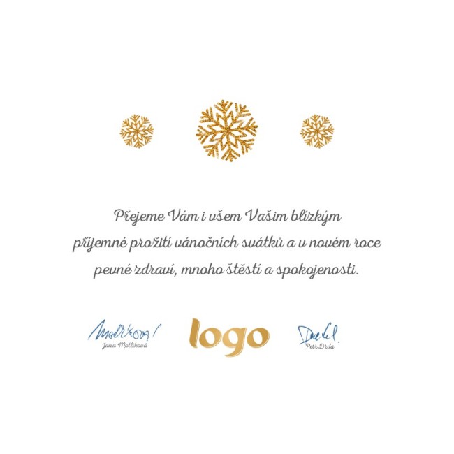 Toto vánoční přání je otevírací ve formě knížky (s textem přání a logo je uvnitř). Přání je do čtvercové obálky. Námi dodávané novoročenky a vánoční přání jsou tištěny na kvalitním 300g křídovém papíře.