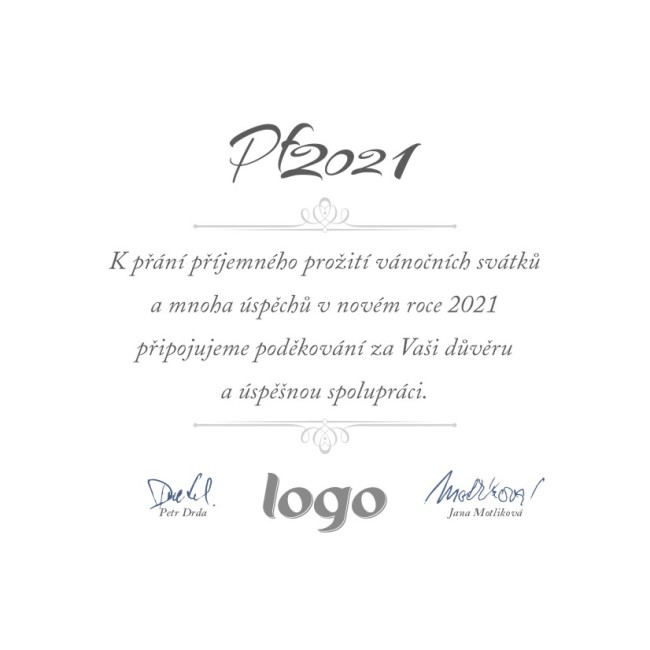 Toto vánoční přání je otevírací ve formě knížky (s textem přání a logo je uvnitř). Přání je do čtvercové obálky. Námi dodávané novoročenky a vánoční přání jsou tištěny na kvalitním 300g křídovém papíře.