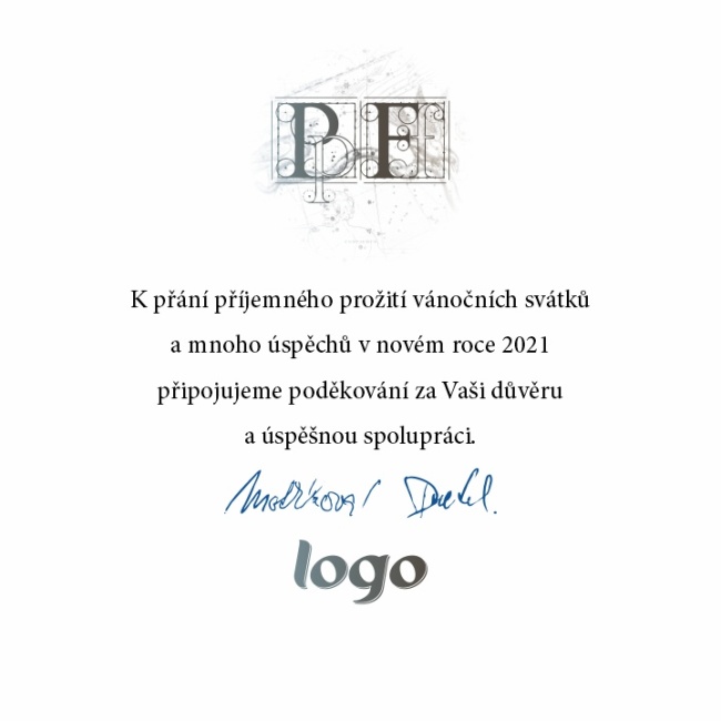Toto vánoční přání je otevírací ve formě knížky (s textem přání a logo je uvnitř). Přání je do čtvercové obálky. Námi dodávané novoročenky a vánoční přání jsou tištěny na kvalitním 300g křídovém papíře.