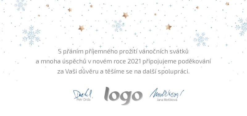 Toto vánoční přání je otevírací ve formě knížky (text přání a logo je uvnitř). Přání je do obálky DL. Námi vyráběné novoročenky a vánoční přání jsou tištěny na kvalitním 300g křídovém papíře.
