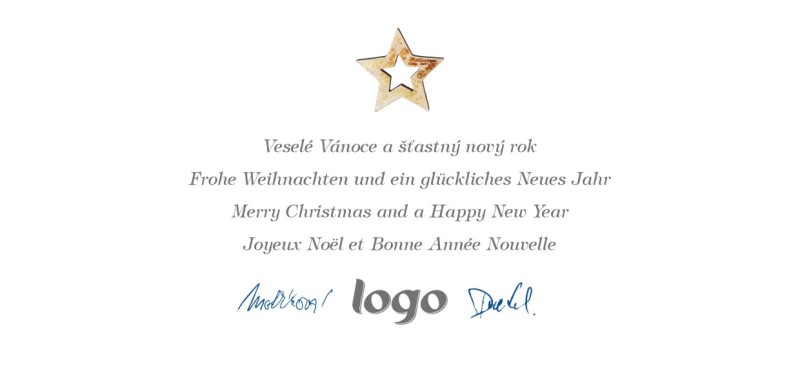 Toto vánoční přání je otevírací ve formě knížky (text přání a logo je uvnitř). Přání je do obálky DL. Námi vyráběné novoročenky a vánoční přání jsou tištěny na kvalitním 300g křídovém papíře.