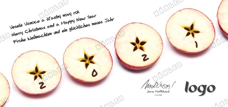 Novoroční přání s rozkrojenými jablíčky