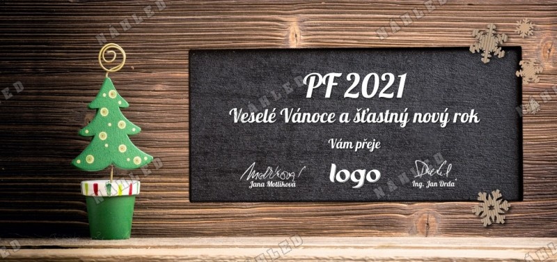 Vánoční přání s tabulkou a dekorací vánočního stromku
