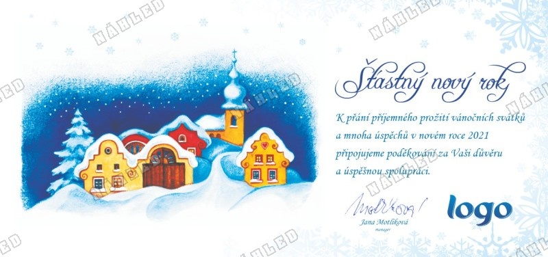 Tuto novoročenku můžete objednat také jako elektronickou pro rozesílání e-mailem. Typ novoročenky zda požadujete tištěnou nebo elektronickou, případně kombinaci upřesníte v pravém sloupci v 1. bodě.