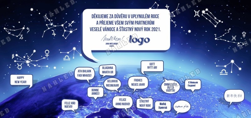 Novoročenka s pozdravy z celého světa z vesmíru se souhvězdím