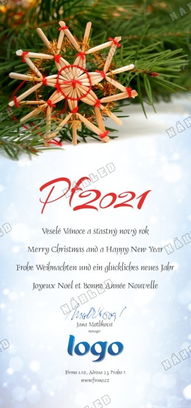 Tuto novoročenku můžete objednat také jako elektronickou pro rozesílání e-mailem. Typ novoročenky zda požadujete tištěnou nebo elektronickou, případně kombinaci upřesníte v pravém sloupci v 1. bodě.