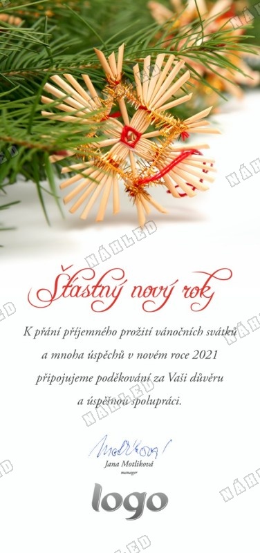 Tuto novoročenku můžete objednat také jako elektronickou pro rozesílání e-mailem. Typ novoročenky zda požadujete tištěnou nebo elektronickou, případně kombinaci upřesníte v pravém sloupci v 1. bodě.